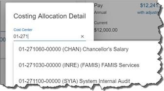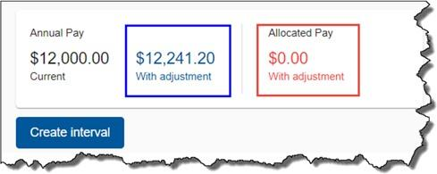 Current pay as well as pay with adjustments will be displayed, along with the allocated pay with adjustment. ‘Allocated pay with adjustment’ will be displayed in red until the ‘Pay with adjustment’ equals the ‘Allocated pay with adjustment’. The document can’t be saved until these two amount match. document.