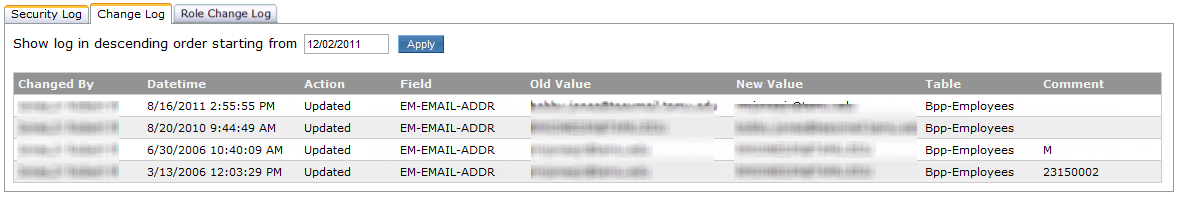 Change Log is a list of changes made to the selected employee’s SSO account such as email address.