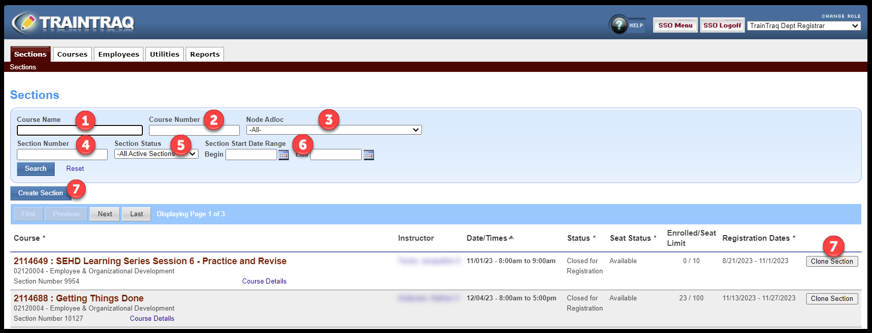 - The Start Section Date Range fields allow entry of the date range to search for sections available during a specific time period.