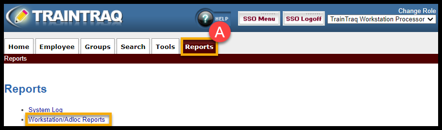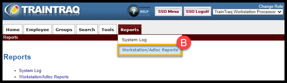 - You can either A) click on the Reports tab then select Workstation/Adloc Reports or B) hover over the Reports tab and click on Workstation/Adloc Reports.