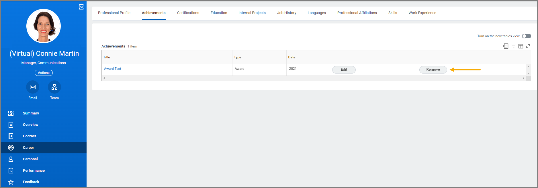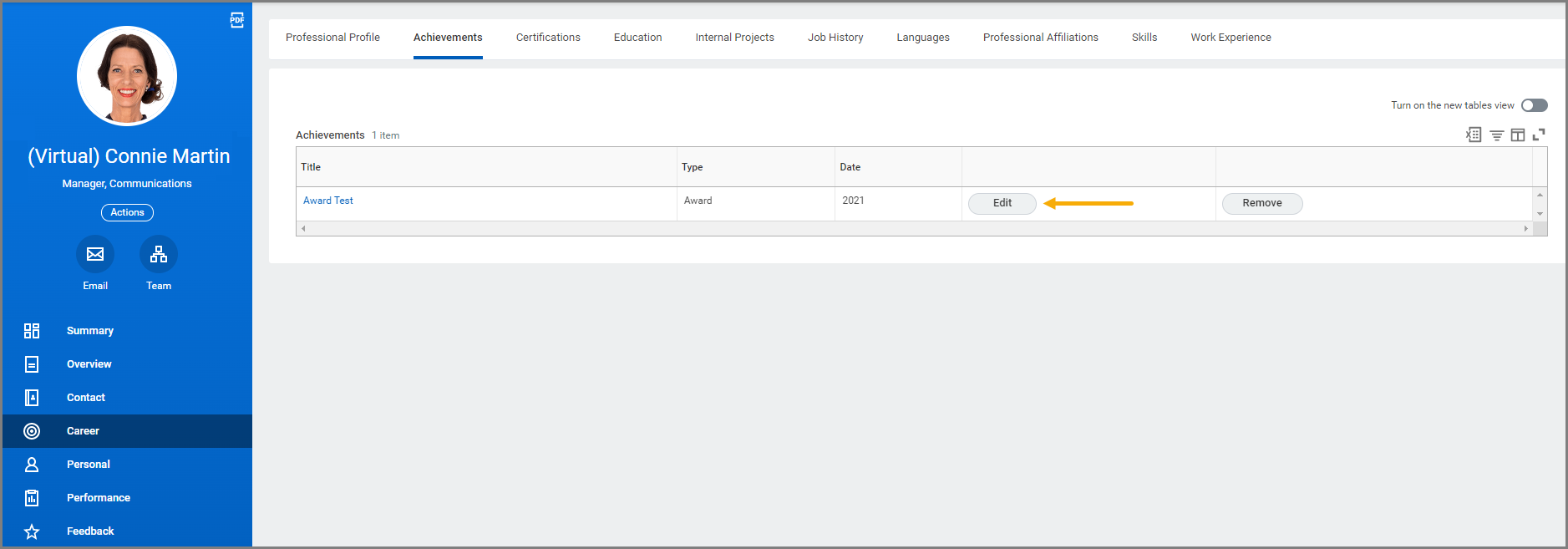 - Navigate to the Employee’s Worker profile and select Career on the left-hand sidebar.