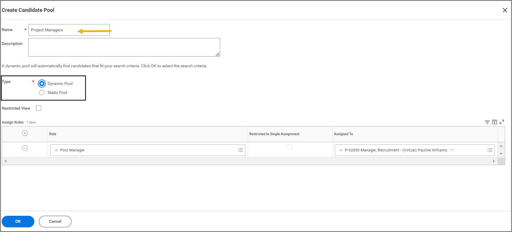 If you selected the Static Pool option, add members manually, use the Find Candidates report to find desired attributes.