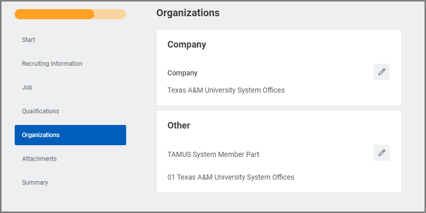 - In the Organizations section, select the correct Member for the position from the TAMUS System Member Hierarchy field.
