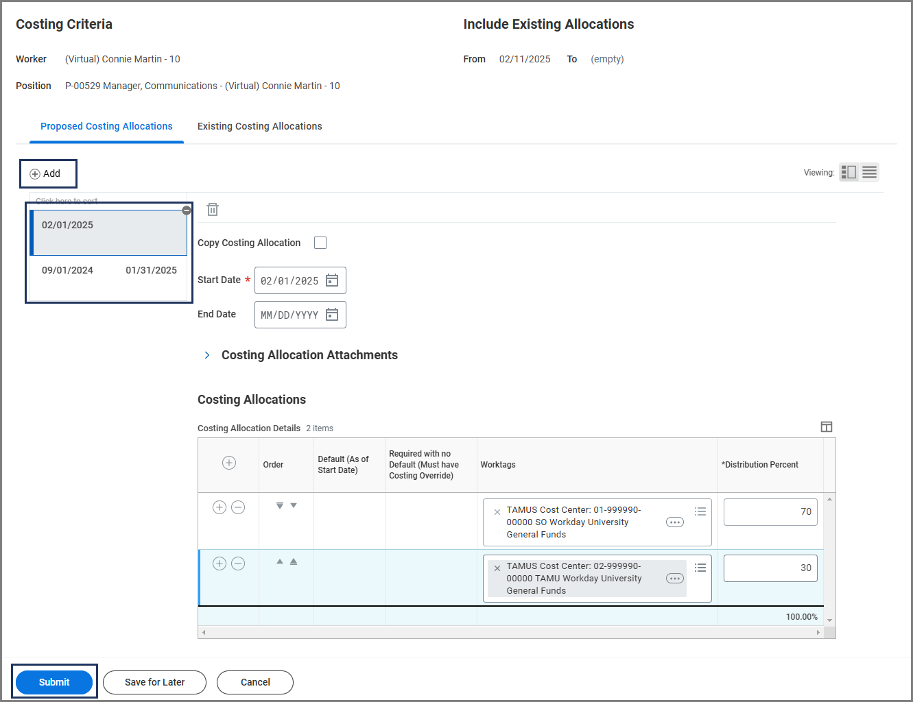 Note: Assigning Costing Allocation is not required for positions with Student Worker types.