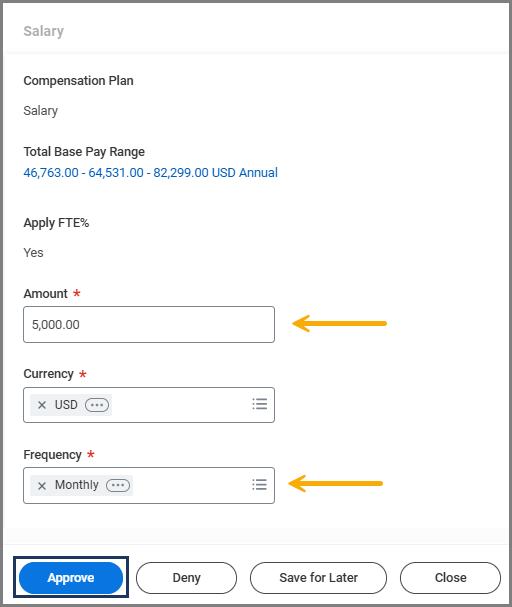 - Scroll down to the Salary or Hourly section applicable to the position. Select the Edit icon.