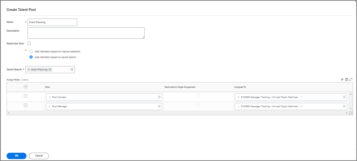 - Name. Enter the name of the Talent Pool.