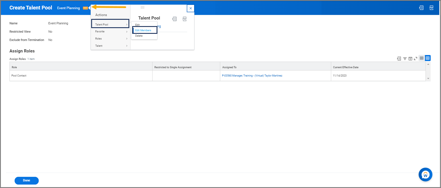 - If you selected to add members manually, select Edit Members from the related action of the Talent Pool.
