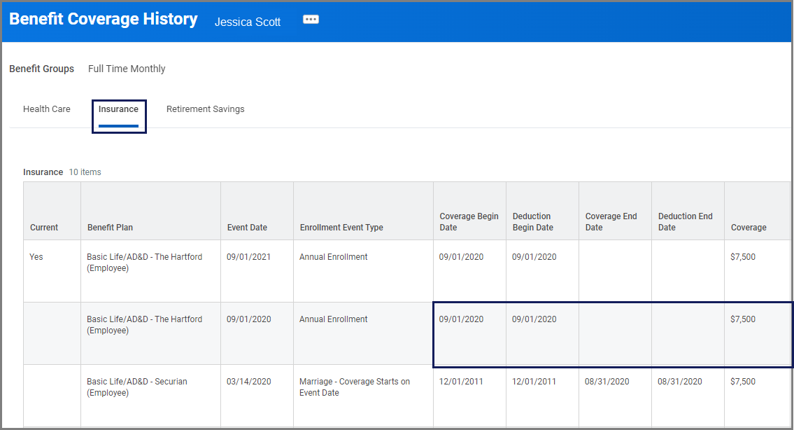 - Select the Insurance tab to view the insurance coverage that will go into effect.