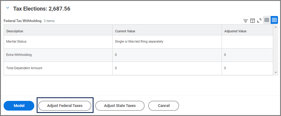 - Select the Adjust Federal Taxes button.