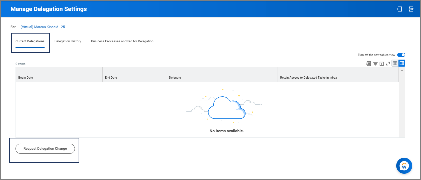 - Under Current Delegations, select Request Delegation Change.
