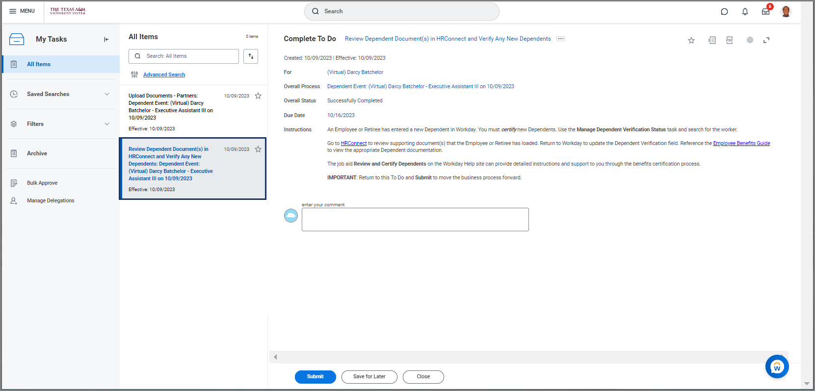 - This verification process requires the Benefits Partner to take action in Workday before submitting the To Do: Review Dependent Document(s) in HRConnect and Verify Any New Dependents.