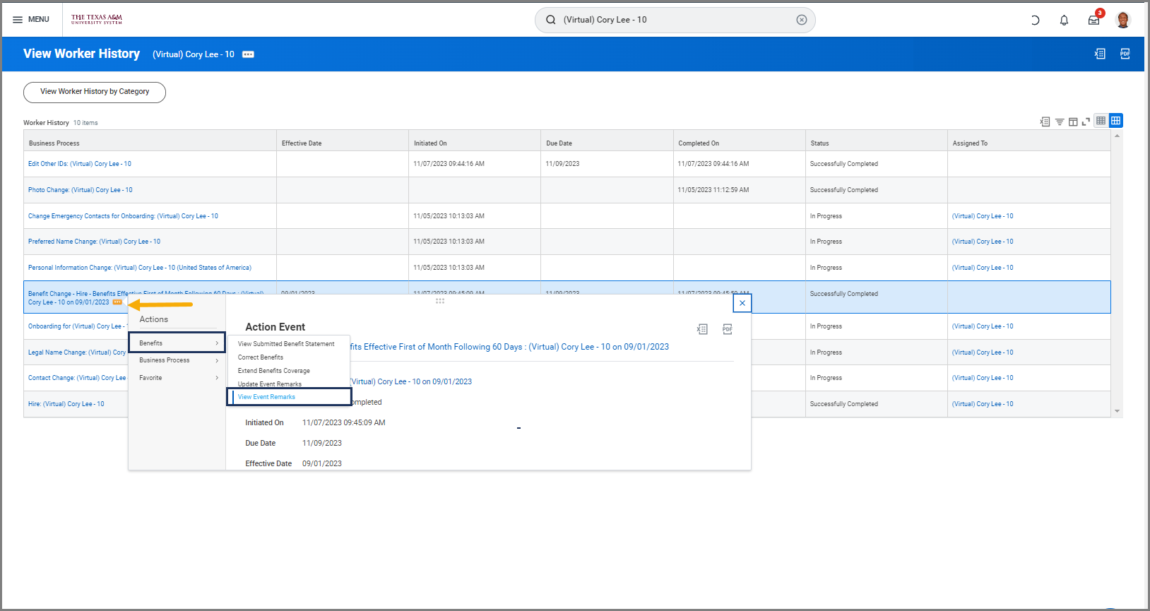 - Navigate to the Benefit Event for the Employee for whom you would like to view an enrollment remark.